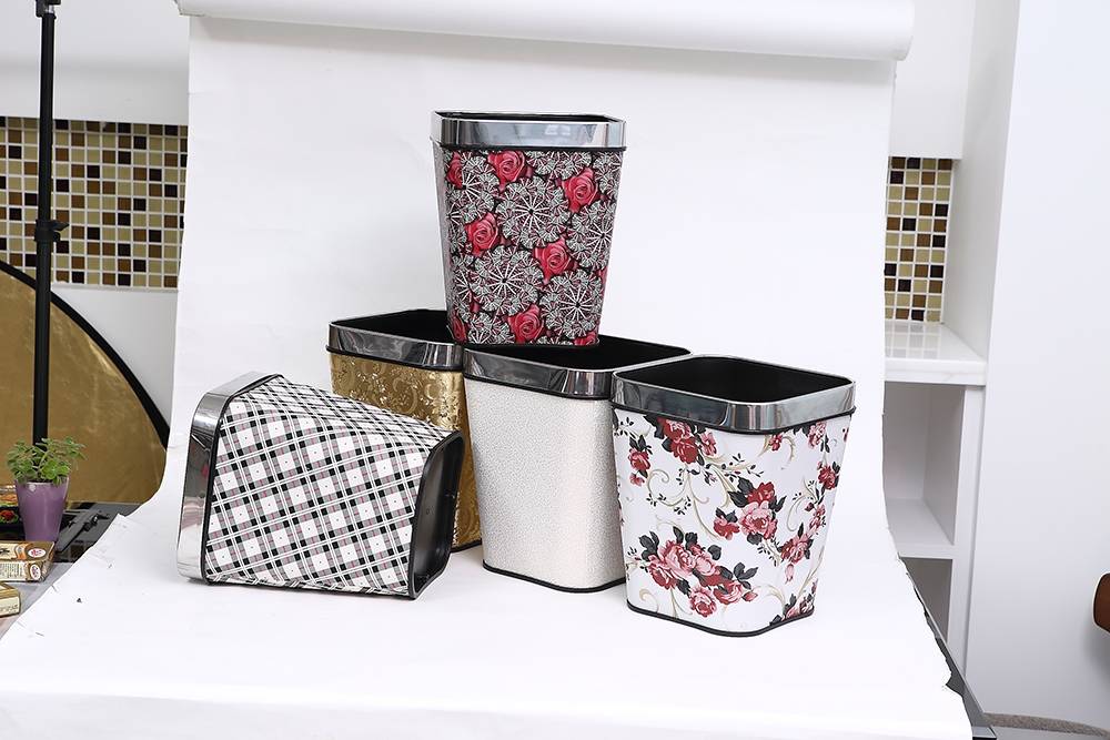 皮革無蓋圓形垃圾桶
